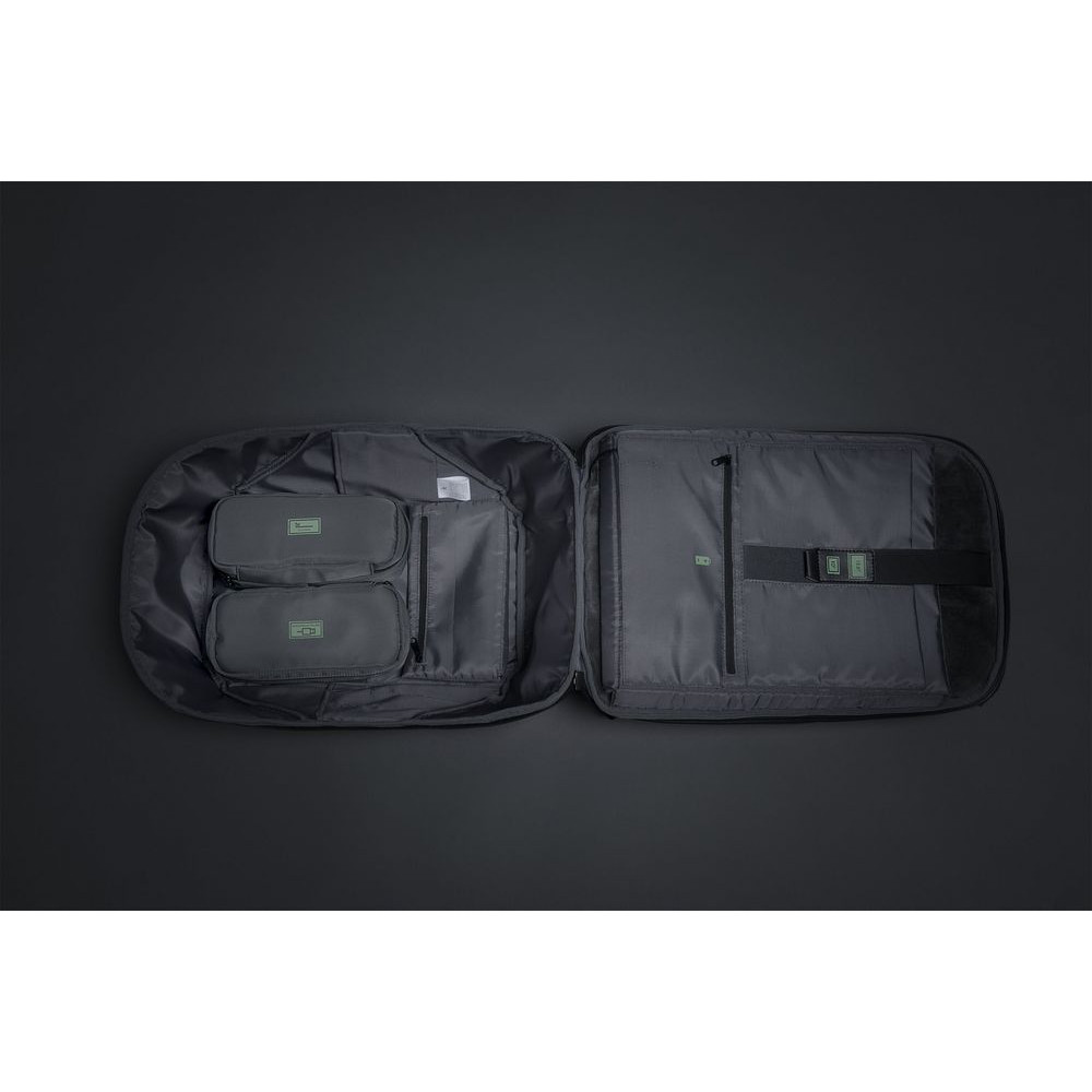 - 2 кармана на молниях, один из которых с портом USB для зарядки - 2 органайзера для туалетных принадлежностей и электронных аксессуаров можно зафиксировать внутри рюкзака на липучках