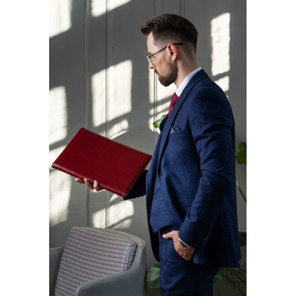 Папка изготовлена из телячьей кожи, подкладка из искусственной свиной кожи.